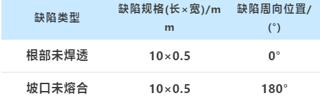 被检工件容易在根部出现根部未焊透及坡口未熔合类缺陷,针对这种情况,分别在工件模型中设定两种缺陷,缺陷参数如表1所示,缺陷模型如图9所示。