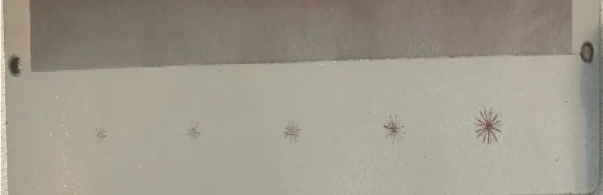 同时采用标准NF EN ISO 3452-3:2001中的Type 2五点式试块验证工艺灵敏度,可见试块上5个裂纹点均能清晰显示,如下图所示。
