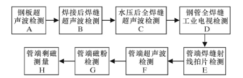 国外在生产中常规的主要无损检测配置如下图一中的A、B、C、E、F、G、H工序。我国目前生产中的检测配置主要岗位如下图中的A、C、D、E、F、G、H工序。