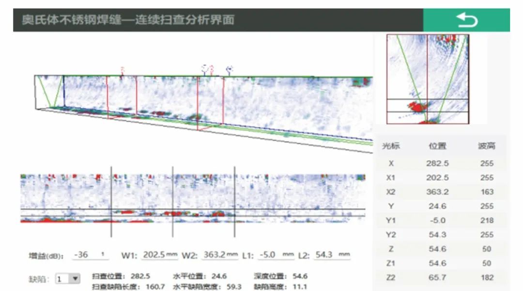 由于奥氏体不锈钢焊接接头的晶粒粗大和材料的各向异性,工程上常常优先选择射线检测来对焊缝的内部缺陷进行检测,但现今大型石油化工设备使用的奥氏体不锈钢管道的管径及壁厚都较大,已不宜采用射线对其进行检测。