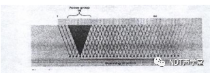 Pipe WIZARD相控阵探头采用线形阵列,容纳晶片60个。晶片成间隔状直线性分布在探头中。通常使用两个阵列探头分布于焊缝两侧。它能产生上千种不同的超声束,可配置40到70范围的扫查角度(β角),以满足分区扫查所需要的各种角度。图2.1为动态聚焦示意图。
